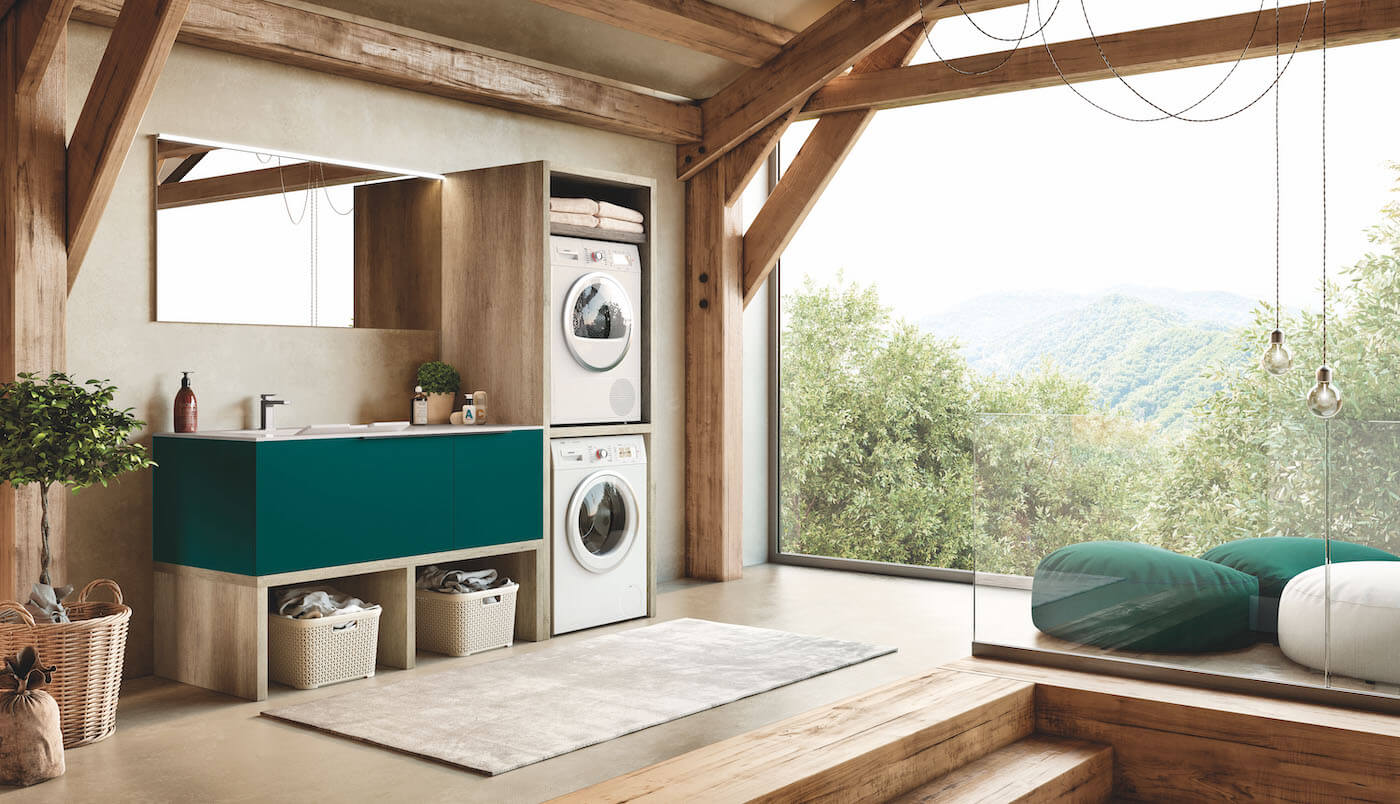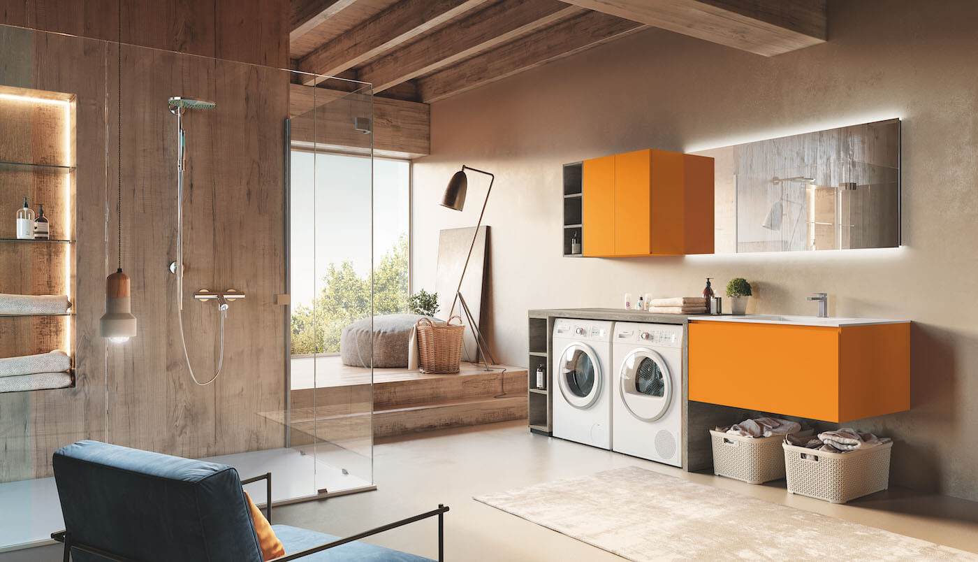 Laundry Deluxe è l’arredamento Puntotre in cui le classiche funzioni lavanderia vengono integrate in perfetta armonia con il design del bagno sfruttando intelligentemente gli spazi. Lavare, stirare e riporre ordinatamente con soluzioni smart adattabili ad ogni contesto ed idee esclusive, come l’asse da stiro a scomparsa, un vero must-have salvaspazio.